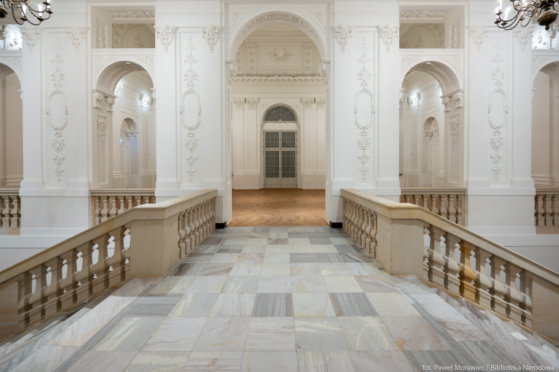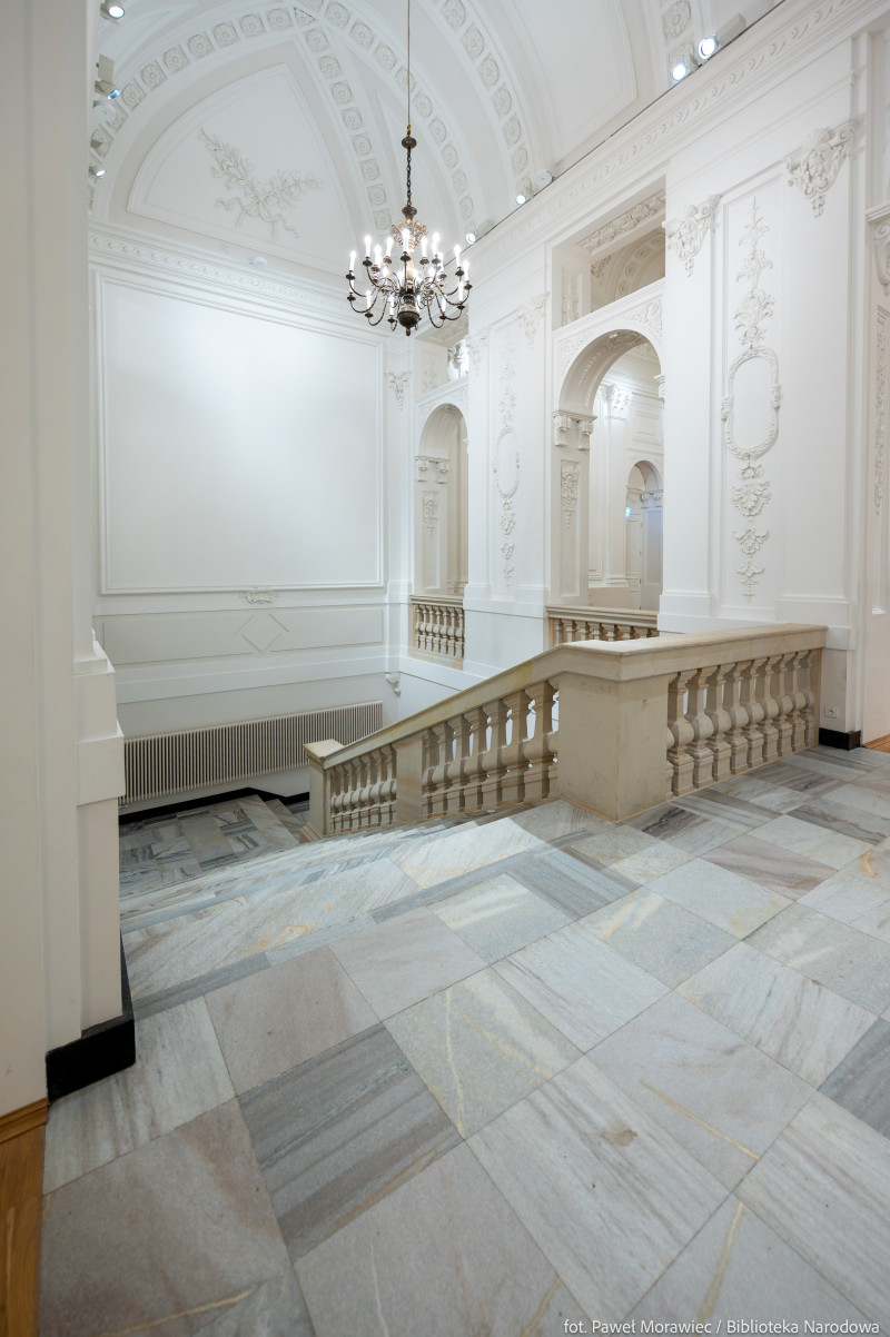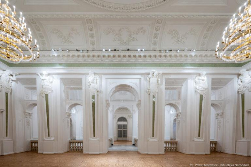 Palača Republike, prvotno v lasti družine Krasiński, je stoletja služila kot prestižna rezidenca in eden najpomembnejših simbolov oblasti. Njeni interierji so bili okrašeni z umetniškimi deli, ki danes predstavljajo del poljske nacionalne dediščine. Danes palača predstavlja pomembno kulturno središče, kjer so shranjene najdragocenejše zbirke Narodne knjižnice. Prav tako služi kot prostor za razstave in izobraževalne dogodke, ki približujejo poljsko knjižnično dediščino. Zahvaljujoč modernizaciji objekt združuje zgodovinsko vrednost z modernimi tehnologijami, omogoča interaktivno predstavitev zbirk — kar je neprecenljivo orodje za ohranjanje in promocijo nacionalne kulture. Objekt je bil tudi prilagojen potrebam invalidov: nameščeni so bili dvigala, rampe in avtomatska vrata, kar zagotavlja udoben dostop za vse obiskovalce. Poleg tega so bila izvedena obnovitvena dela, ki so obnovila sijaj zgodovinske fasade ter prenovila štukature in arhitekturne detajle, kar poudarja zgodovinski značaj stavbe.